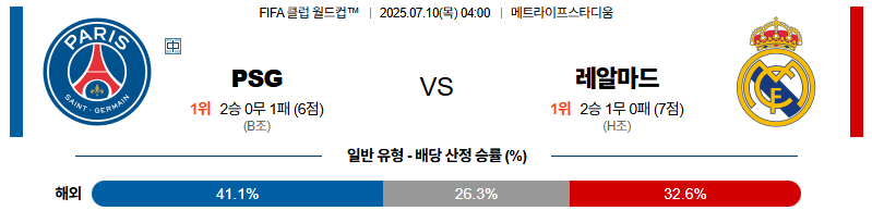 파리생제르망 대 레알마드리드 FIFA클럽월드컵 07월10일 맞대결 생중계, 스포츠중계, 스포츠분석