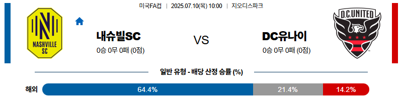 내슈빌 대 DC유나이티드 미국FA컵 07월10일 맞대결 생중계, 스포츠중계, 스포츠분석