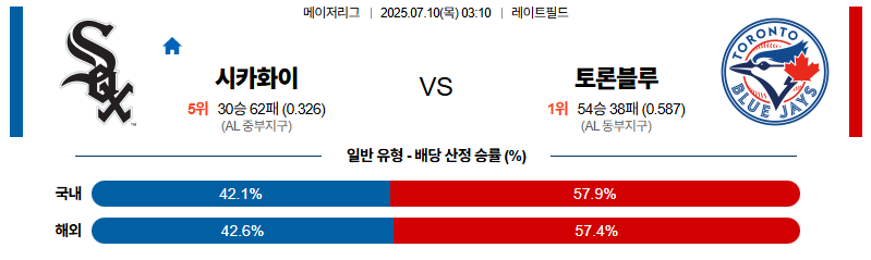 시카고W 대 토론토 MLB 07월10일 맞대결 생중계, 스포츠중계, 스포츠분석