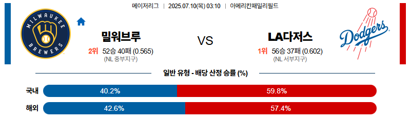 밀워키 대 LA다저스 MLB 07월10일 맞대결 생중계, 스포츠중계, 스포츠분석