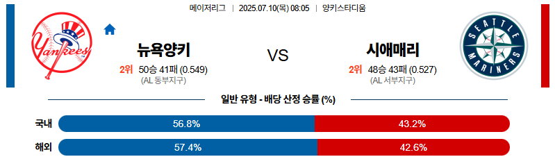 뉴욕양키스 대 시애틀 MLB 07월10일 맞대결 생중계, 스포츠중계, 스포츠분석
