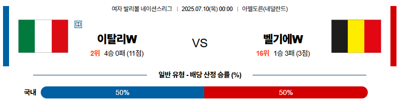 이탈리아 대 벨기에 네이션스리그(w) 07월10일 맞대결 생중계, 스포츠중계, 스포츠분석