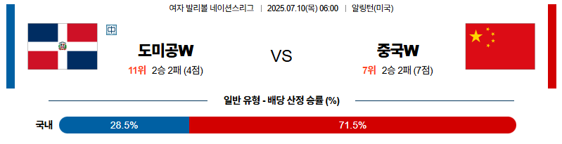 도미니카공화국 대 중국 네이션스리그(w) 07월10일 맞대결 생중계, 스포츠중계, 스포츠분석