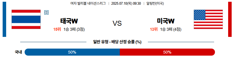 태국 대 미국 네이션스리그(w) 07월10일 맞대결 생중계, 스포츠중계, 스포츠분석