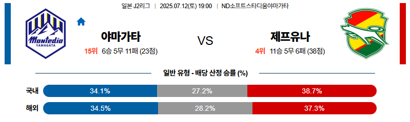 야마가타 대 제프유나이티드 J리그2 07월12일 맞대결 생중계, 스포츠중계, 스포츠분석