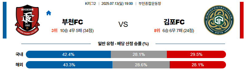 부천 대 김포 K리그2 07월13일 맞대결 생중계, 스포츠중계, 스포츠분석