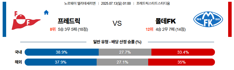 프레드릭스타드 대 몰데 노르웨이1부 07월13일 맞대결 생중계, 스포츠중계, 스포츠분석