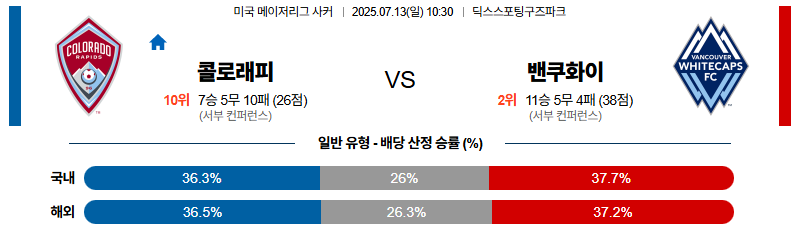 콜로라도 대 벤쿠버 메이저리그사커 07월13일 맞대결 생중계, 스포츠중계, 스포츠분석