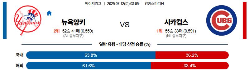 뉴욕양키스 대 시카고컵스 MLB 07월12일 맞대결 생중계, 스포츠중계, 스포츠분석