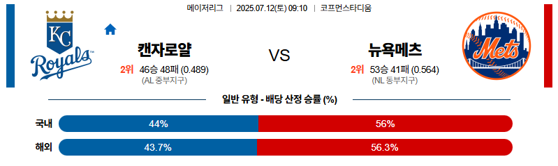 캔자스시티 대 뉴욕메츠 MLB 07월12일 맞대결 생중계, 스포츠중계, 스포츠분석