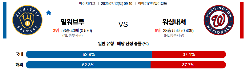 밀워키 대 워싱턴 MLB 07월12일 맞대결 생중계, 스포츠중계, 스포츠분석