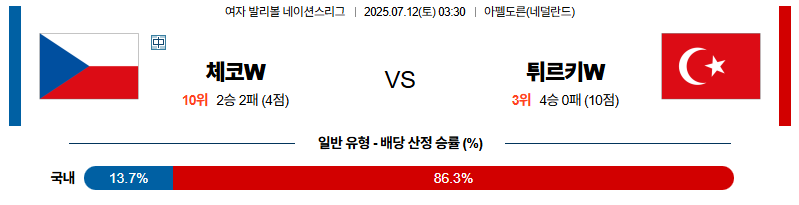 체코 대 튀르키예 네이션스리그(w) 07월12일 맞대결 생중계, 스포츠중계, 스포츠분석