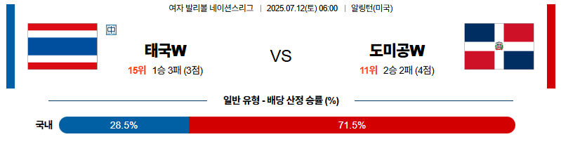 태국 대 도미니카공화국 네이션스리그(w) 07월12일 맞대결 생중계, 스포츠중계, 스포츠분석