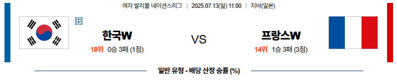 대한민국 대 프랑스 네이션스리그(w) 07월13일 맞대결 생중계, 스포츠중계, 스포츠분석