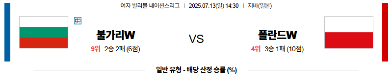 불가리아 대 폴란드 네이션스리그(w) 07월13일 맞대결 생중계, 스포츠중계, 스포츠분석