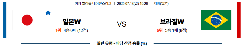 일본 대 브라질 네이션스리그(w) 07월13일 맞대결 생중계, 스포츠중계, 스포츠분석