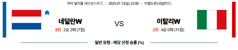 네덜란드 대 이탈리아 네이션스리그(w) 07월13일 맞대결 생중계, 스포츠중계, 스포츠분석
