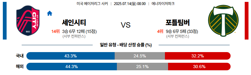 세인트루이스 대 포틀랜드 메이저리그사커 07월14일 맞대결 생중계, 스포츠중계, 스포츠분석