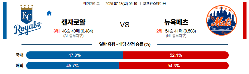 캔자스시티 대 뉴욕메츠 MLB 07월13일 맞대결 생중계, 스포츠중계, 스포츠분석