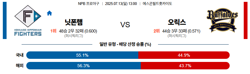 니혼햄 대 오릭스 NPB 07월13일 맞대결 생중계, 스포츠중계, 스포츠분석