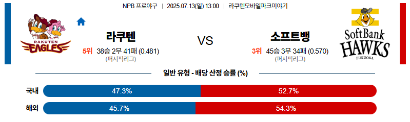 라쿠텐 대 소프트뱅크 NPB 07월13일 맞대결 생중계, 스포츠중계, 스포츠분석