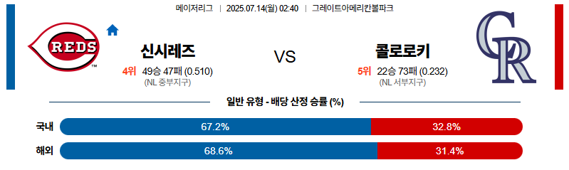 신시내티 대 콜로라도 MLB 07월14일 맞대결 생중계, 스포츠중계, 스포츠분석