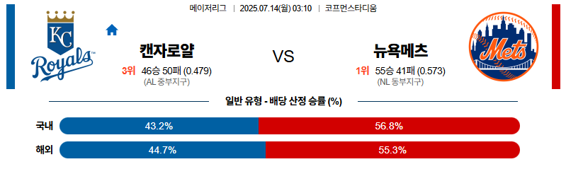 캔자스시티 대 뉴욕메츠 MLB 07월14일 맞대결 생중계, 스포츠중계, 스포츠분석