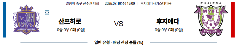 산프레체히로시마 대 후지에다 일본일왕배 07월16일 맞대결 생중계, 스포츠중계, 스포츠분석