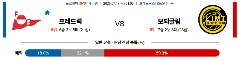 프레드릭스타 대 보되글림트 노르웨이1부 07월17일 맞대결 생중계, 스포츠중계, 스포츠분석
