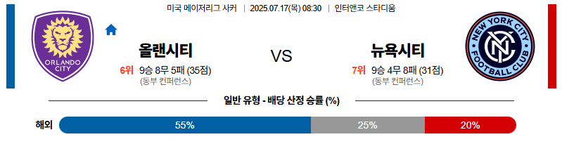 올랜도 대 뉴욕시티 메이저리그사커 07월17일 맞대결 생중계, 스포츠중계, 스포츠분석