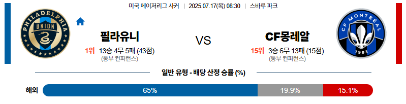 필라델피아 대 몽레알 메이저리그사커 07월17일 맞대결 생중계, 스포츠중계, 스포츠분석
