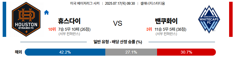 휴스턴 대 벤쿠버 메이저리그사커 07월17일 맞대결 생중계, 스포츠중계, 스포츠분석