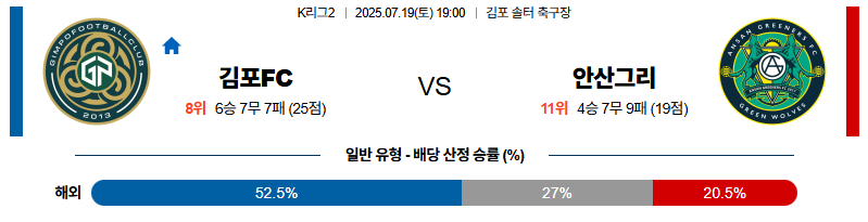 김포 대 안산 K리그2 07월19일 맞대결 생중계, 스포츠중계, 스포츠분석