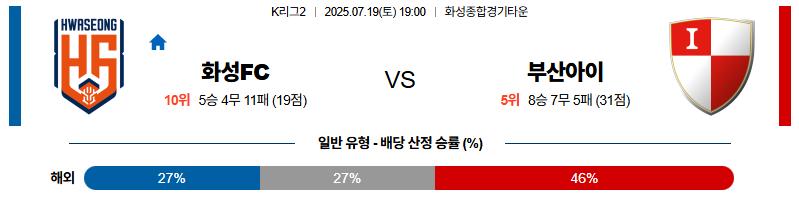 화성 대 부산 K리그2 07월19일 맞대결 생중계, 스포츠중계, 스포츠분석