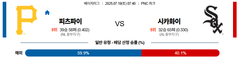 피츠버그 대 시카고W MLB 07월19일 맞대결 생중계, 스포츠중계, 스포츠분석