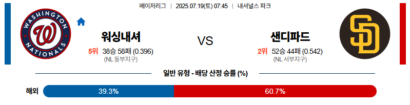 워싱턴 대 샌디에이고 MLB 07월19일 맞대결 생중계, 스포츠중계, 스포츠분석