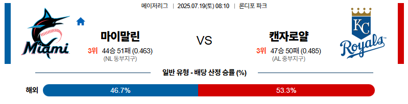 마이애미 대 캔자스시티 MLB 07월19일 맞대결 생중계, 스포츠중계, 스포츠분석