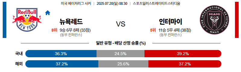 뉴욕레드불 대 인터마이애미 메이저리그사커 07월20일 맞대결 생중계, 스포츠중계, 스포츠분석