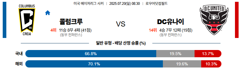 콜롬버스 대 DC유나이티드 메이저리그사커 07월20일 맞대결 생중계, 스포츠중계, 스포츠분석
