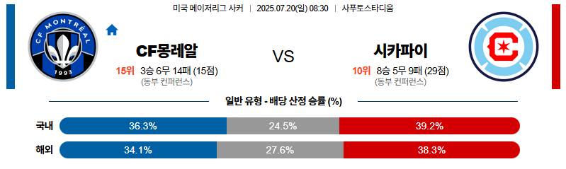 몽레알 대 시카고 메이저리그사커 07월20일 맞대결 생중계, 스포츠중계, 스포츠분석