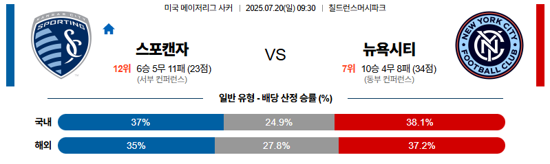 캔자스시티 대 뉴욕시티 메이저리그사커 07월20일 맞대결 생중계, 스포츠중계, 스포츠분석
