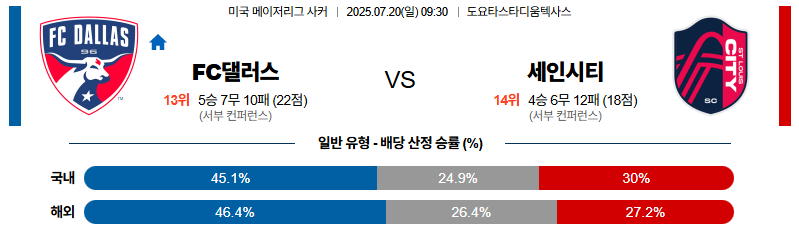 댈러스 대 세인트루이스 메이저리그사커 07월20일 맞대결 생중계, 스포츠중계, 스포츠분석