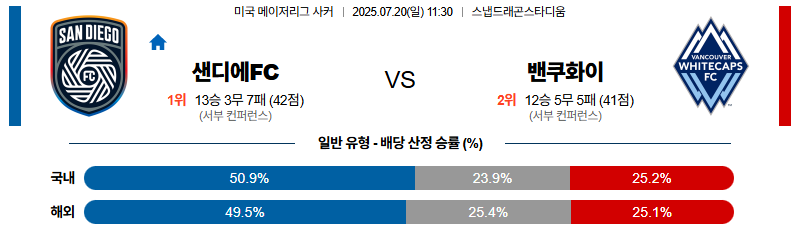 샌디에고 대 벤쿠버 메이저리그사커 07월20일 맞대결 생중계, 스포츠중계, 스포츠분석
