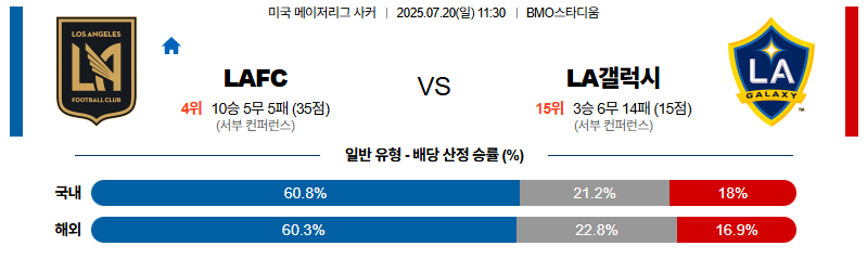 LAFC 대 LA갤럭시 메이저리그사커 07월20일 맞대결 생중계, 스포츠중계, 스포츠분석