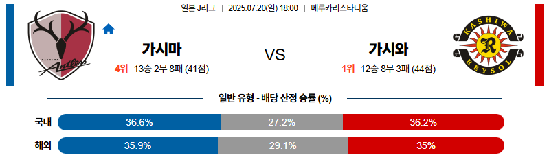 가시마 대 가시와 J리그1 07월20일 맞대결 생중계, 스포츠중계, 스포츠분석