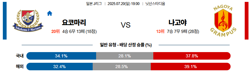 요코하마마리노스 대 나고야 J리그1 07월20일 맞대결 생중계, 스포츠중계, 스포츠분석