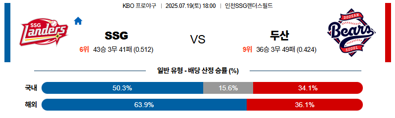 SSG 대 두산 KBO 07월19일 맞대결 생중계, 스포츠중계, 스포츠분석
