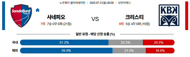 사네피오르 대 크리스티안순 노르웨이1부 07월21일 맞대결 생중계, 스포츠중계, 스포츠분석