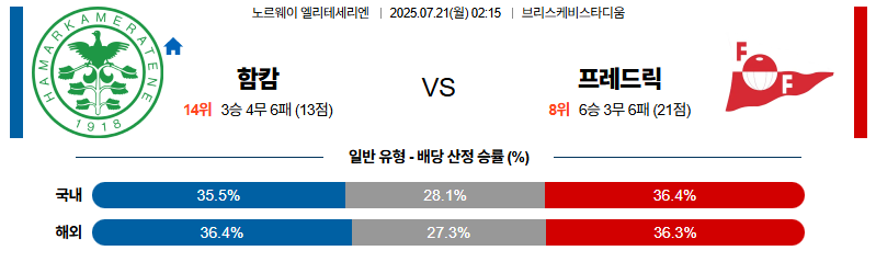 함캄 대 프레드릭스타 노르웨이1부 07월21일 맞대결 생중계, 스포츠중계, 스포츠분석