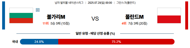 불가리아 대 폴란드 네이션스리그 07월20일 맞대결 생중계, 스포츠중계, 스포츠분석